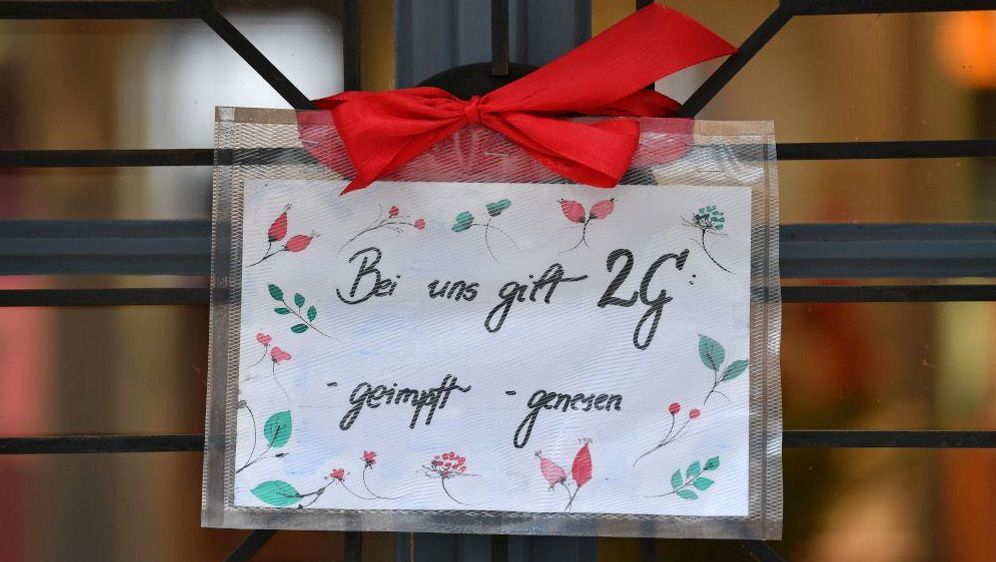 Genesennachweise gelten also seitdem nur noch für maximal drei Monate - laut Ministerium formal auch schon bestehende Nachweise. Der Status wurde also unter fadenscheinigen Begründungen von 6 Monaten auf nur noch 3 Monate verkürzt wovon man nur 2 Monate nutzen kann. Auf einem Schild wird vor einem Cafe auf die 2G-plus-Regel hingewiesen.